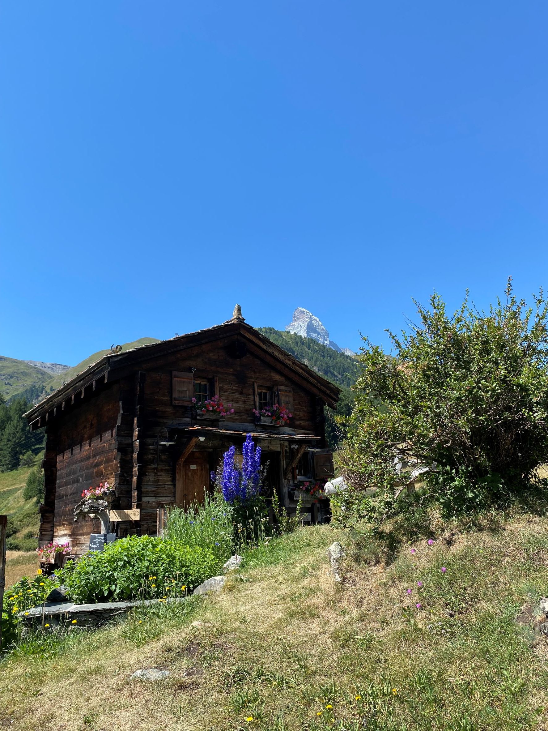 Kesälomasta pari viikkoa vierähti Sveitsin Alpeilla juosten sekä kiipeillen ja viimeiset päivät Italian puolella Lago Maggiore järvellä rentoutuen. Lensimme Milanon Malpensan kentälle, josta jatkoimme junalla Sveitsin puolelle. Autovuokrien noustua hurjasti ja Zermattin sekä Saas-Feen kylien ollessa autottomia, juna oli varsin hyvä vaihtoehto. Pari etappia kuljimme postiautolla, joten reissussa oli myös seikkailufiilistä. Muut junaliput oli varattu jo ennakkoon, paitsi ensimmäinen paikallisjuna Busto Arsizioon. Ostimme lipun kentältä ja hyppäsimme junaan. Busto Arsiziossa ehdimme käydä lounaalla ennen seuraavan junan lähtöä. Lämmintä oli 40 astetta, mutta onneksi ravintolassa oli ilmastointi. Samoin junissa. Tästä matka jatkui Domodossolan kautta Vispiin ja Staldeniin. Näissä kaikissa siis junan vaihto. Staldenista juna lähti nousemaan Zermattin kylään kiskoavusteisesti. Eli junaraiteiden välissä on hammastettu kisko, joka avustaa junaa jyrkässä nousussa ylös vuorenrinnettä. Majoituimme mukavassa hotellissa ihan keskustassa. Zermattin suurin ja kaunein nähtävyys, Matterhorn, näkyy lähes joka puolelle ja sitä on ihailtu sekä kylästä että vuorten rinteiltä.
