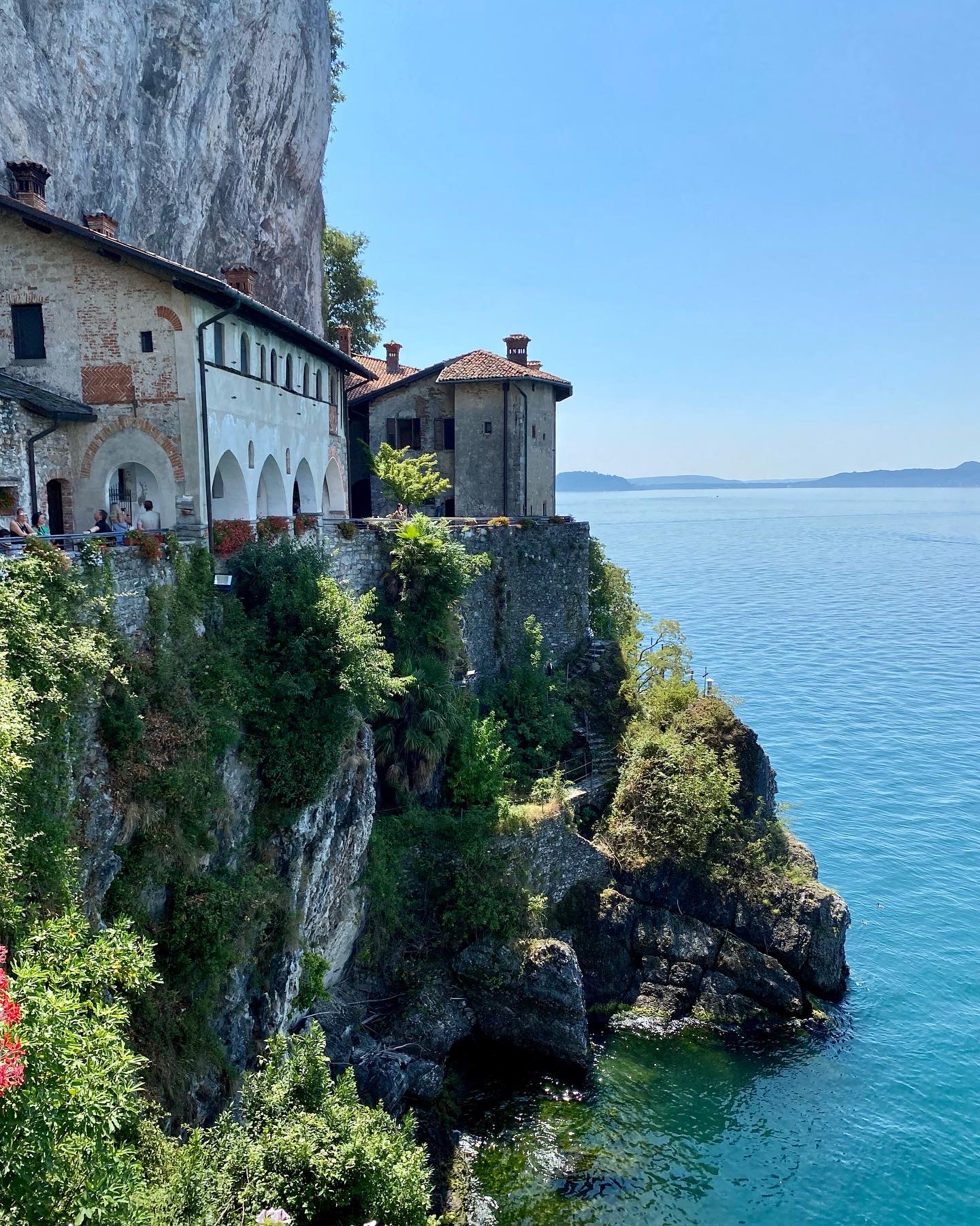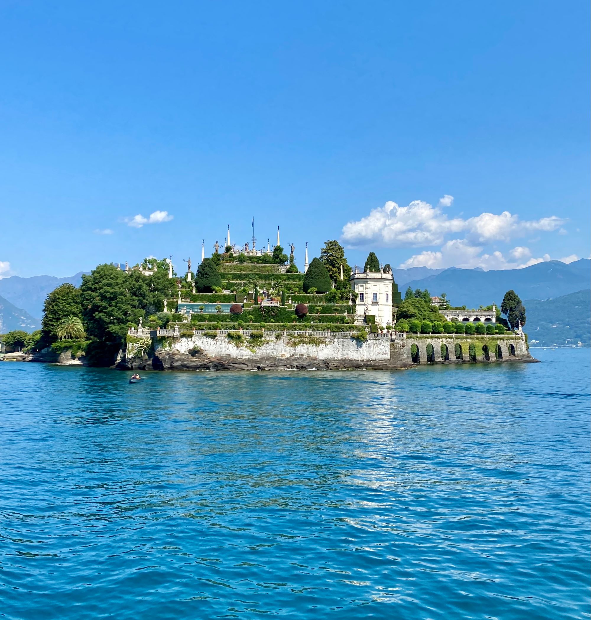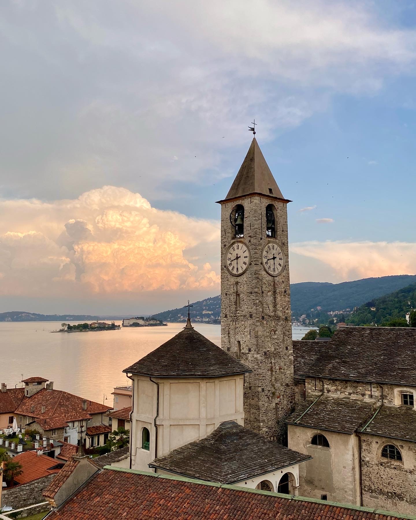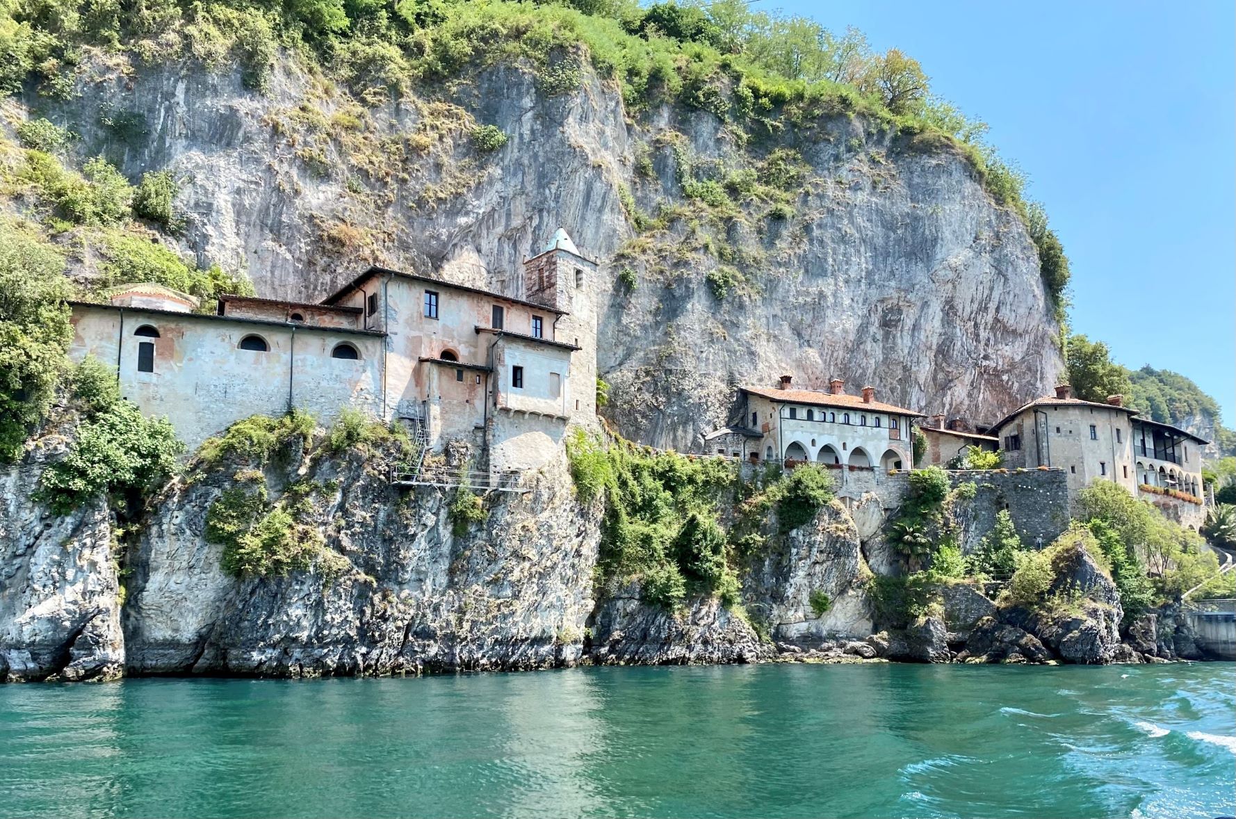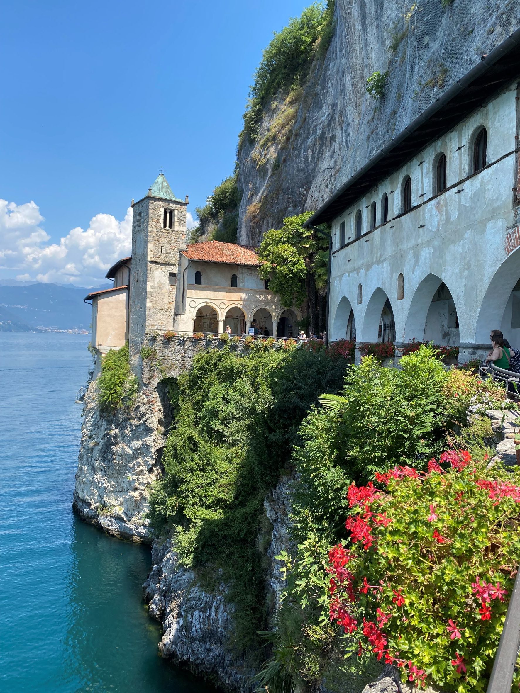 Ensimmäisenä iltana kävimme kiertämässä vanhaa kylää vuoren rinteellä. Maisemat järvelle olivat kauniita ja vanha kylämaisema oli positiivinen yllätys. Seuraavana päivänä lähdimme lautalla vastakkaisella rannalla sijaitsevaan Santa Caterinan luostariin. Luostari on kaunis rakennus jyrkänteen seinämässä. Täältä jatkoimme lautalla Stresaan, jossa kävimme hiukan kiertelemässä. Stresa on turistikylä ja pintaliitopaikka, jossa monet julkkiksetkin lomailevat. Paljon ihmisiä ja kadut täynnä krääsäkojuja sekä hinnat korkeita. Ei ollut meidän paikka. Jatkoimme lautalla Isola Bella saaren ohi kalastajasaarelle Isola Pescatorille. Täällä kävimme syömässä ja kiertelimme kapeita kujia vanhojen rakennusten välissä. Palasimme lautalla takaisin Bavenoon ja kävimme vielä iltauinnilla. Söimme illallista rantakadulla aivan järven tuntumassa. Taivas oli pilvinen ja upeat salamat välähtelivät pilvien lomasta taukoamatta. Vettä ei satanut ja ukkonenkin jyrähteli vain satunnaisesti jossain kaukana. Todella hieno illallisesitys.