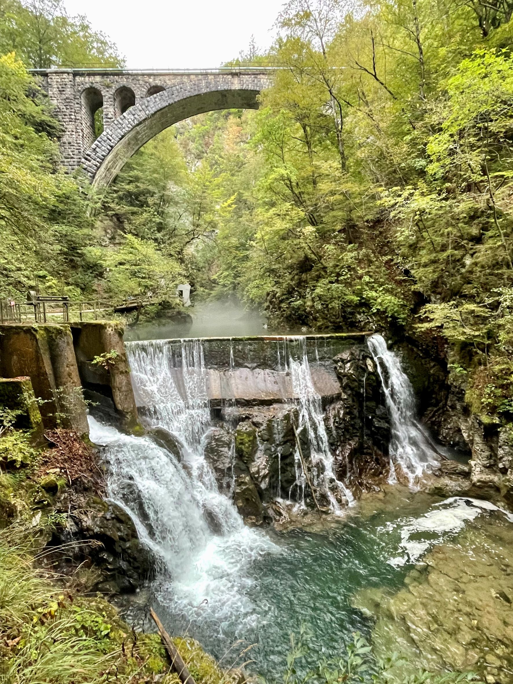 Kävimme kiertämässä Mostnica rotkon Stara Fuzinassa. Rotko ja sen pohjalla kulkeva joki olivat hienoja, mutta ehkä Slovenialaiseen maisemaan hiukan vaatimattomia. Kiva kierros kuitenkin vuorikiipeilyn väsyttämillä jaloilla.