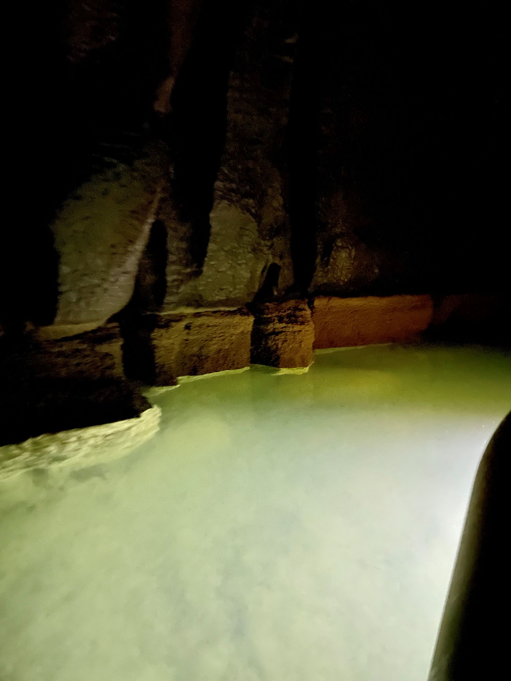 Luolan läpi virtaa sateiseen aikaan puro, mutta nyt se oli lähes kuiva. Luolassa on maanalainen järvi, jossa kävimme soutelemassa kumiveneellä. Vesi on erilaisista mineraaleista johtuen hyvin vihreää, mutta kirkasta. Taskulamppujen valossa sekä luola että järvi olivat tosi kauniita ja jotenkin taianomaisia. Sammutimme taskulamput ja laitoimme vain yhden lampun palamaan veneen perään vesirajaan. Valo heijasti koko järven säkenöivän vihreäksi.