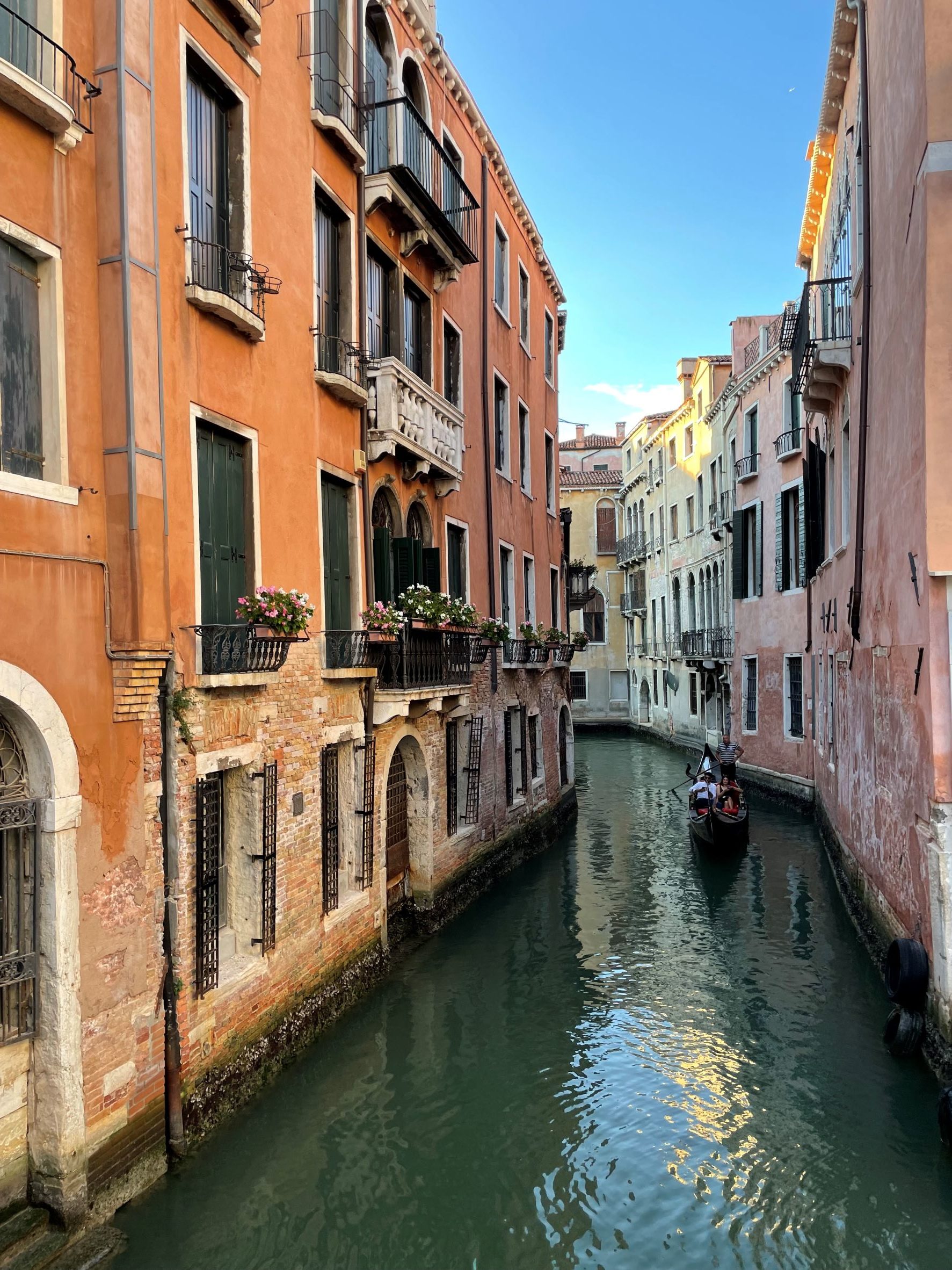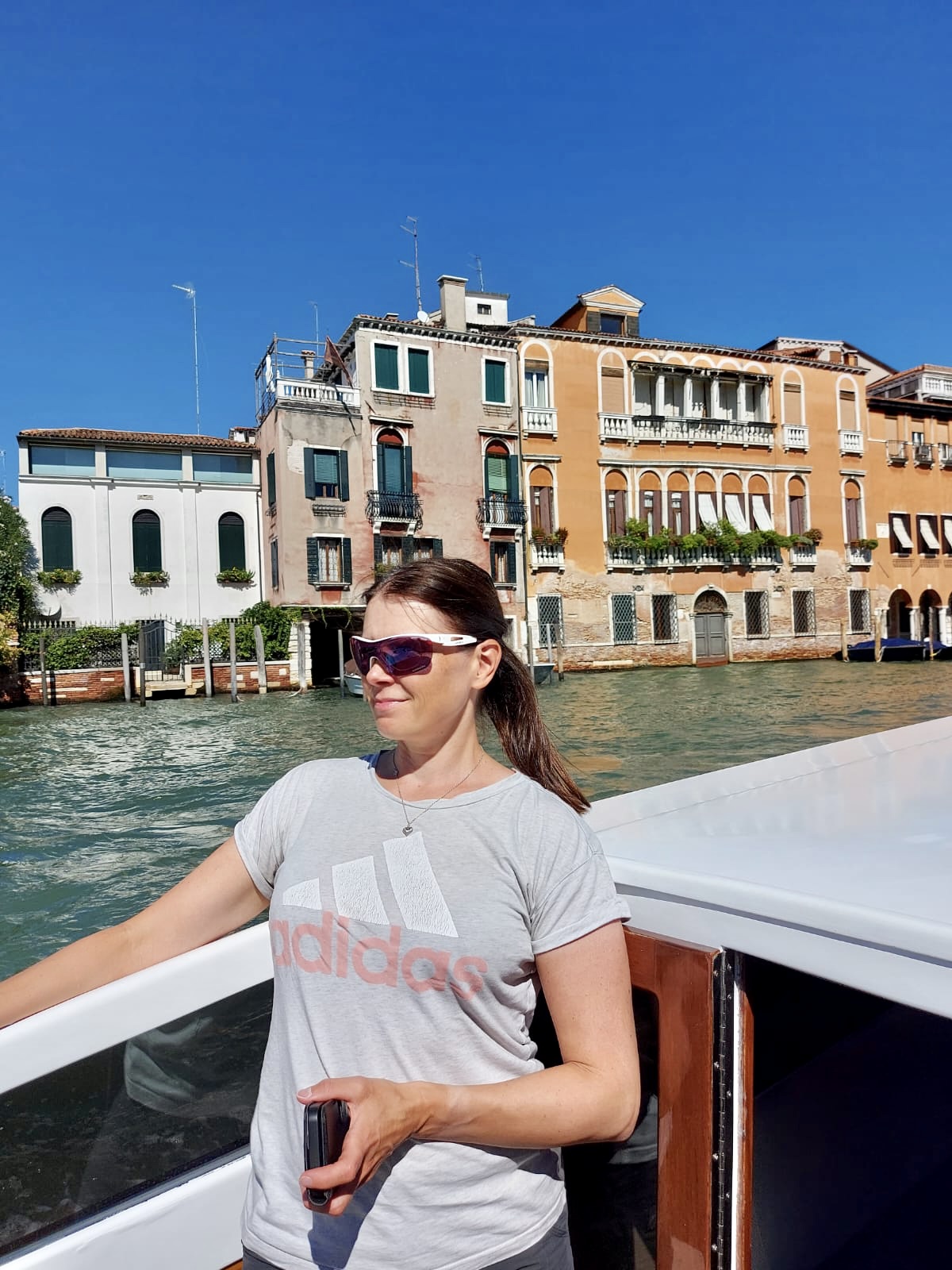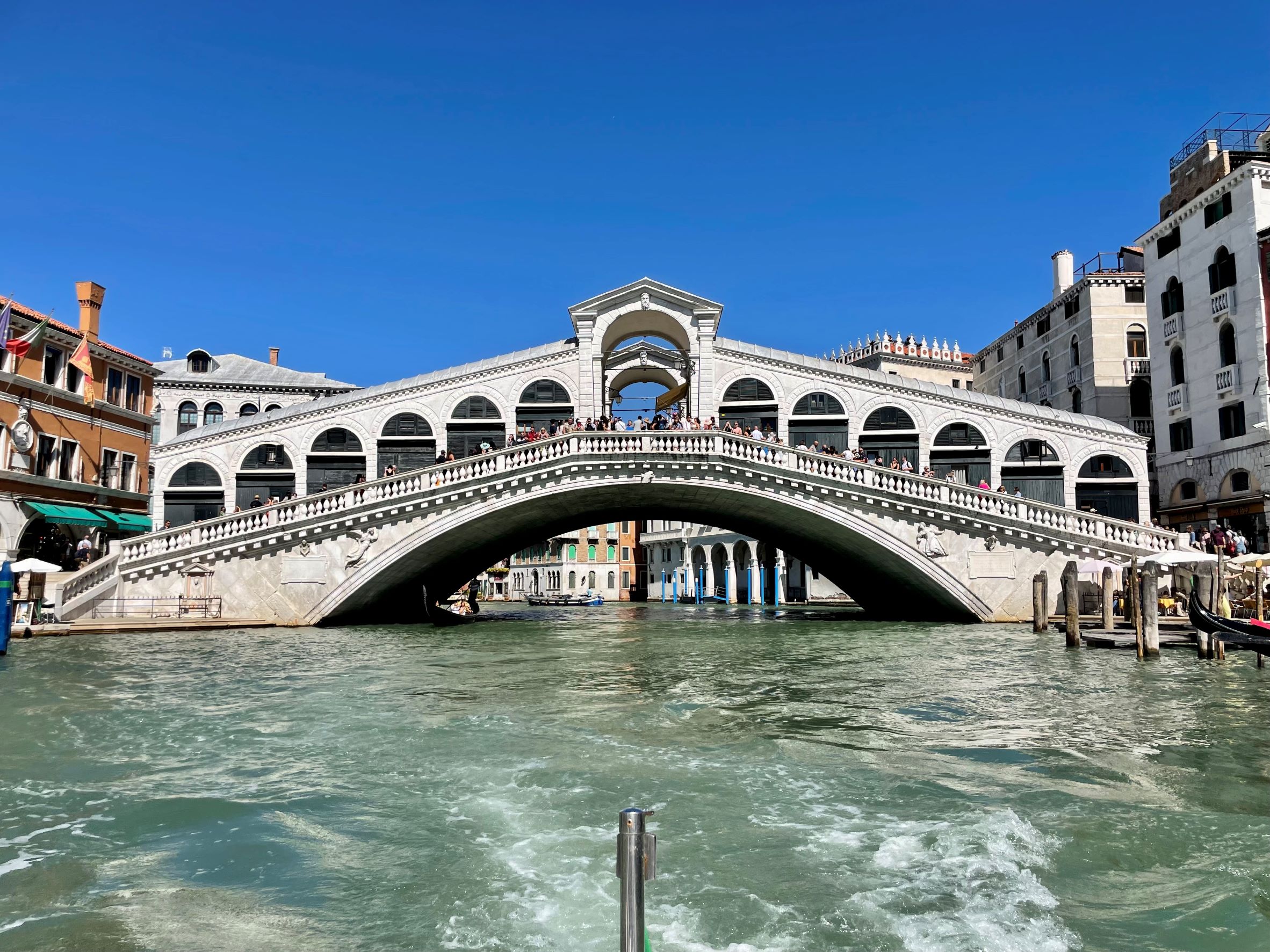 Seuraavana päivänä kaupungin kiertely jatkui. Tällä kertaan suuntasimme Rialton sillalle ihmismassan keskelle. Sieltä jatkoimme rauhallisemmille kujille ja pikkuhiljaa kohti rautatieasemaa, josta otimme taksiveneen takaisin San Marcon aukiolle. Ajoimme veneellä Grande Canalea pitkin sekä Rialton sillan alta. Oli kiva nähdä tämä kanaali myös vesiltä käsin, sekä kaikki sen rannoilla sijaitsevat rakennukset ja sillat. Grande Canalen varrella on aika vähän jalkakäytäviä, joten vene on käytännössä ainoa tapa saada hyvä yleiskuva koko kanaalista ja sen varrella olevista rakennuksista. Tällaisena helteisenä päivänä myös varsin mukava vaihtoehto.