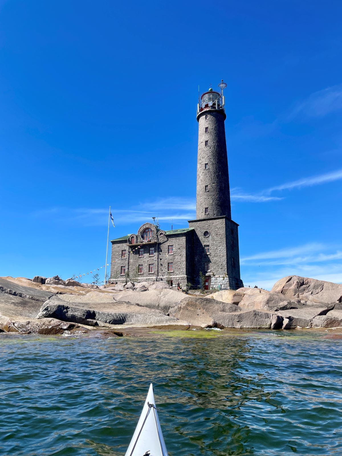 Bengtskärille meloimme n. 10 km avomerellä. Vain satunnaisia pieniä kallioluotoja näkyi silloin tällöin horisontissa.