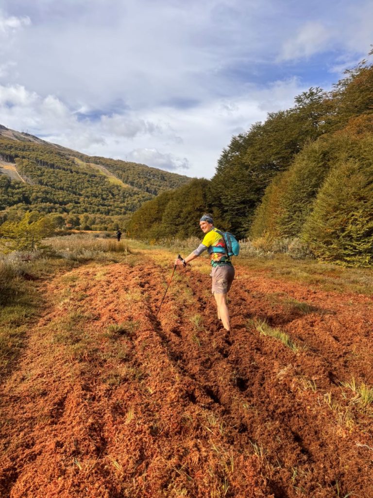 Ushuaian soisuus yllätti. Täällä on todella paljon suota, joka ainakin näiden sateiden jälkeen oli märkää ja upottavaa. Itsekin kävin pariin kertaan koko jalan mitalta suossa tai mutavellissä. Ylös sai taiteilla aina varovasti, jotta kenkäkin seuraisi jalan mukana, eikä jäisi mössöön. Seuraava huoltoväli oli profiilikartan mukaan melko tasainen, mutta lähes pelkkää suota ja jokunen mutainen metsäpolkupätkä. Alun alamäkirallattelu ja tämä raskas maasto alkoi viemään voimia.